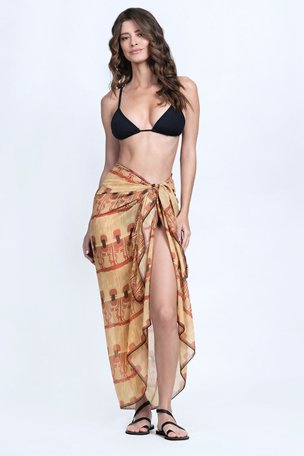 The Morphé design revives the timeless human figurines found on ancient ceramics. Through the vision of artist Pascaline Bossu, these symbolic forms are reimagined in a graceful, rhythmic composition. This pareo, with its soft drape and contemporary flair, bridges past and present — perfect for adding subtle drama and story to your look, whether on the coast or in the city.