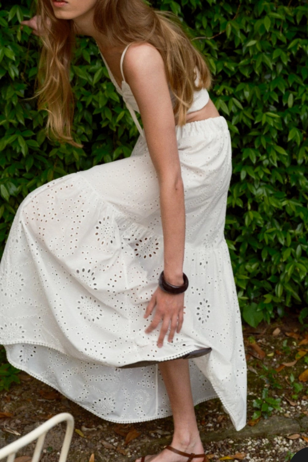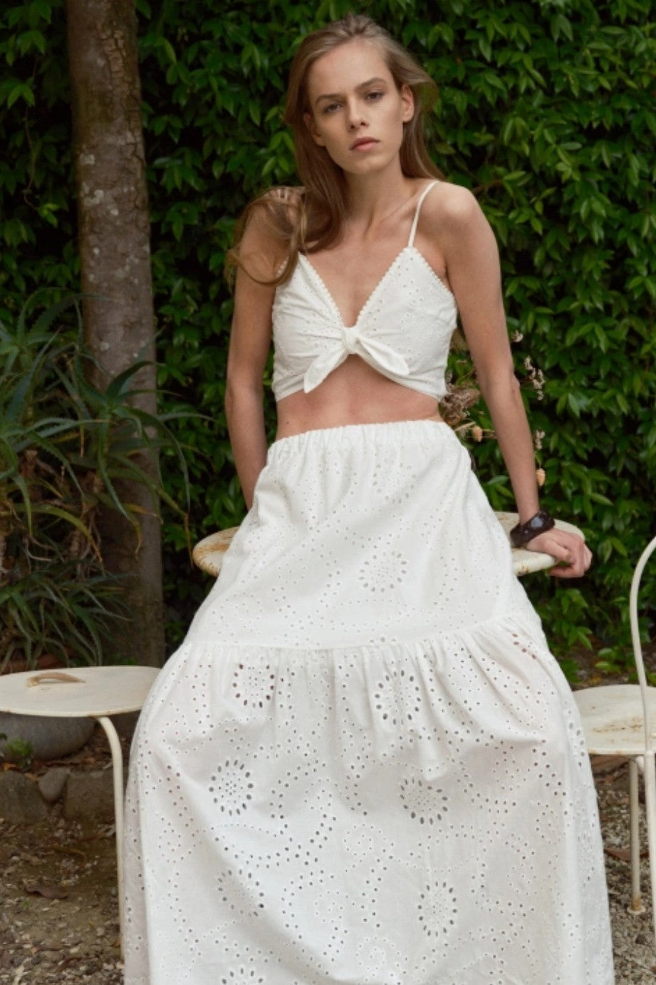 Size GuideLong skirt in sangallo cotton with flounce.